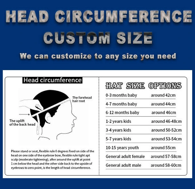 48 цм за бебе, 50цм, 52цм, 54цм за децу, 56 цм за младе. |